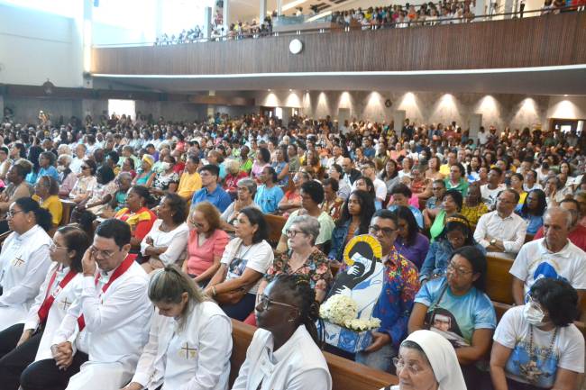 E realmente a alegria e a paixão podiam ser vistas no rosto de cada fiel presente no santuário. A voluntária nas obras, dona Iara Nascimento é tão devota e ama tanto o anjo bom da Bahia que estava emocionada ao falar sobre Santa Dulce. “Ela é tudo na minha vida! Eu me sinto bem quanto estou trabalhando aqui. Sempre sonhei em fazer esse trabalho e no final de 2022 fui chamada, tenho muita honra de servir aqui”, exclamou dona Iara com muita emoção.