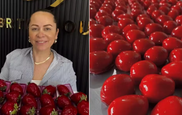 🍓 O doce combina morango fresco, brigadeiro e uma calda vermelha de açúcar, que endurece e forma uma casquinha crocante. No Brasil, lojas e confeitarias têm recebido centenas de pedidos após a guloseima viralizar nas redes sociais.
