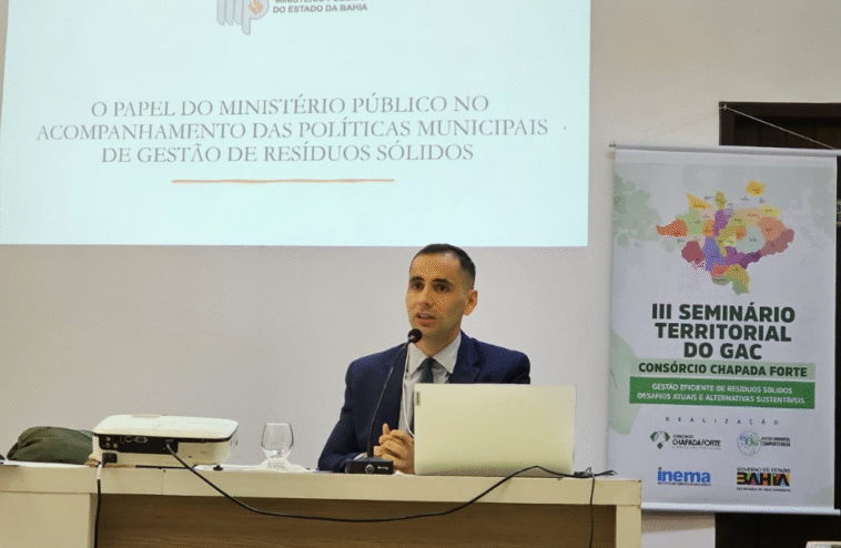 O atual cenário da gestão de resíduos sólidos na região da Chapada Diamantina e os caminhos para melhoria dos serviços de coleta, tratamento e destinação do lixo foram debatidos pelo Ministério Público do Estado da Bahia no III Seminário Territorial do GAC Consórcio Chapada Forte, realizado na Câmara de Vereadores de Lençóis. O evento teve como tema a “Gestão Eficiente de Resíduos Sólidos: Desafios Atuais e Alternativas Sustentáveis” e objetivou o compartilhamento de experiências para que os municípios da região avancem em soluções sustentáveis para o tratamento dos resíduos sólidos.